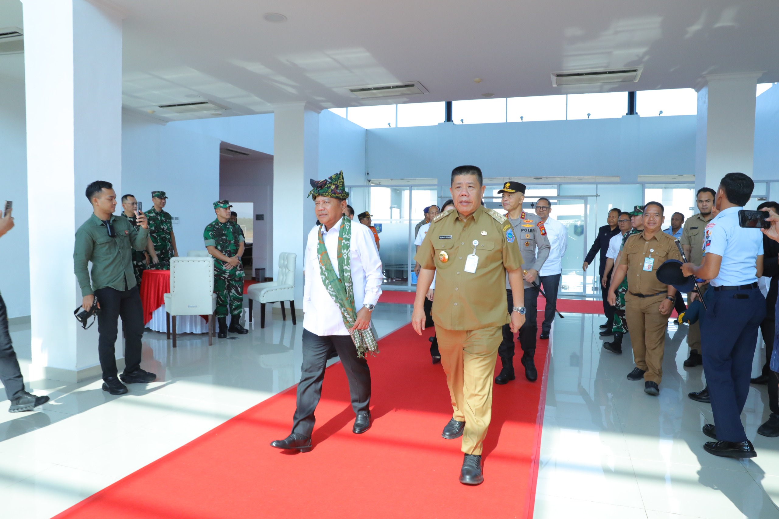 PANGKALPINANG — Gubernur Kepulauan Bangka Belitung (Babel) Hidayat Arsani, menyambut langsung kedatangan Kepala Badan Intelijen Negara (BIN) Republik Indonesia Jenderal TNI (Purn) Muhammad Herindra, di Terminal VIP Bandara Depati Amir, Selasa, (26/8/2025).