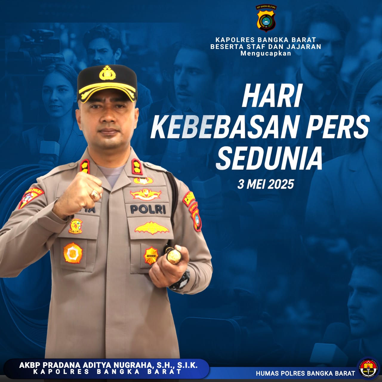 Mentok, Bangka Barat – Dalam momentum peringatan Hari Kebebasan Pers Sedunia, Kapolres Bangka Barat AKBP Pradana Aditya Nugraha, SH, SIK, menyampaikan ucapan selamat kepada seluruh insan pers di Indonesia. Peringatan ini dijadikan momen untuk menegaskan kembali pentingnya kolaborasi antara kepolisian dan media dalam membangun demokrasi yang sehat dan transparan.